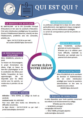 Vous trouverez ici l'organigramme de notre établissement pour l'année scolaire 2025-2026 ainsi que le livret de présentation à l'attention des futurs élèves de 6ème